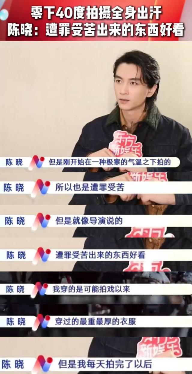 陈晓在这么寒冷的环境中,拍戏还能出汗,就足以说明他为了拍摄好动作戏,一遍又一遍的做动作,只是这些汗水因为寒冷的天气,很快又结成了冰渣子。