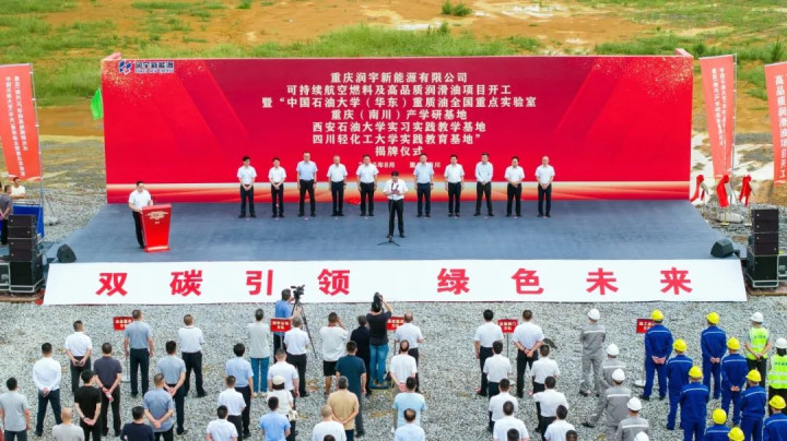 近日,由中国化学工程第六建设有限公司总承包的重庆润宇新能源有限公司可持续航空燃料及高品质润滑油项目开工暨“中国石油大学(华东)重质油全国重点实验室重庆(南川)产学研基地、西安石油大学实习实践教学基地、四川轻化工大学实践教育基地”揭牌仪式在水江化工产业园举行。